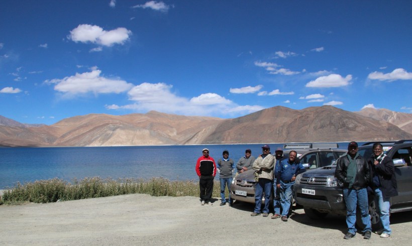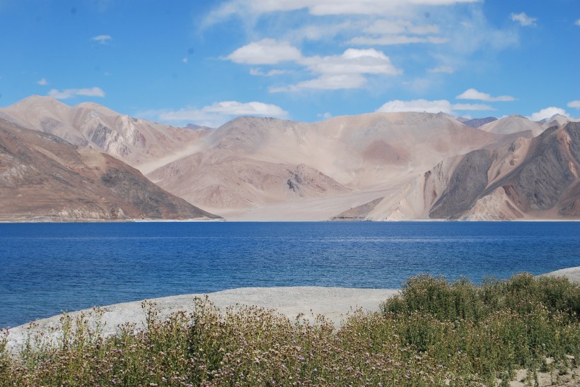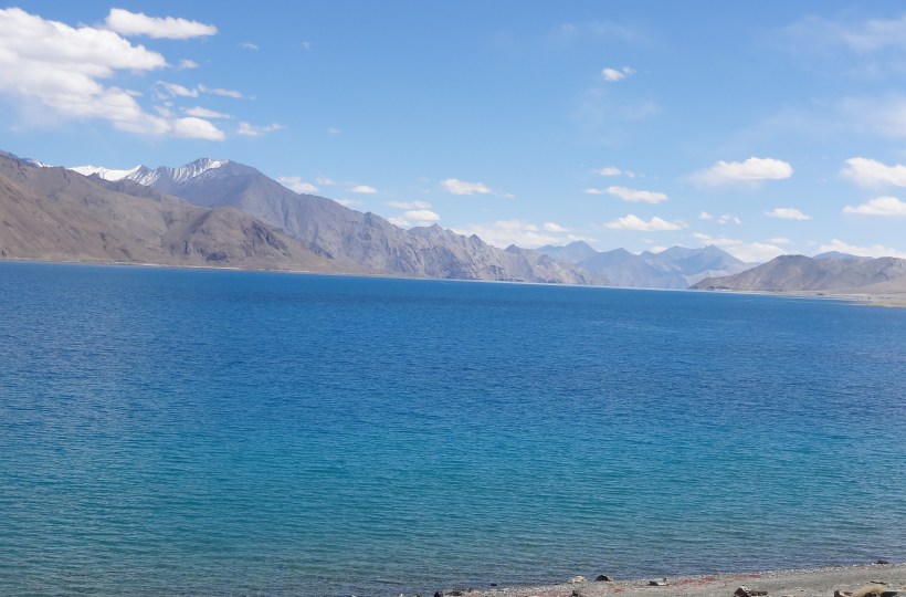 Pangong Lake is one of the few high-altitude salt water lakes. The lake lies at an altitude of 14,400 ft. We were told that Indian Territory currently extends to about 50 kms, along the Lake.