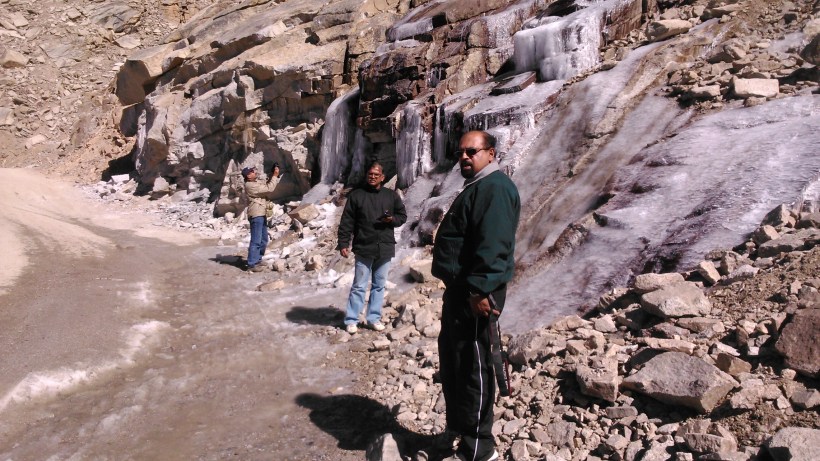 The road was narrow for the most part, but thankfully, we found the traffic to be generally thin. We had the first feel of ice, in the form of a small, frozen waterfall, after South Pullu.
