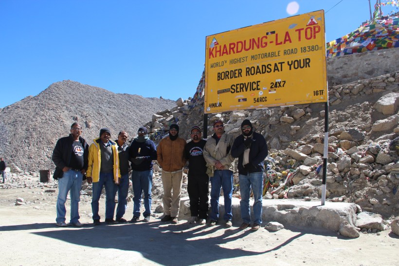 The signboard atop Khardung La mentions its altitude as 18,380 ft. and proclaims it as the `highest motorable road in the world’. Visitors are generally advised not to stay for more than 30 minutes on the Top, and some of us soon started to feel the effects of the high altitude.