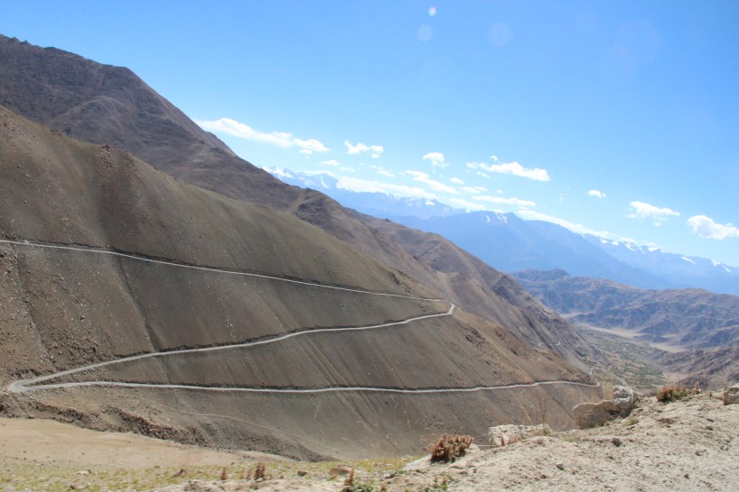 We had an initial plan to reach our next destination, Pangong Lake, through Khalsar – Agham – Wari La – Sarkthi route, which appeared quite short, on the map but difficult to navigate. After discussing with the Air Force Officers, we dropped this idea and retraced our steps to Leh via Khardung-La, and proceeded in the direction of Pangong Tso, through Karu.
