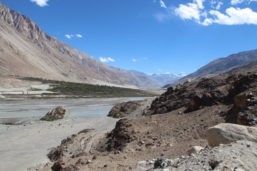 As we descended into Nubra Valley, we started seeing a slightly different terrain. After we pass Khardung village, the Shyok River appears below.