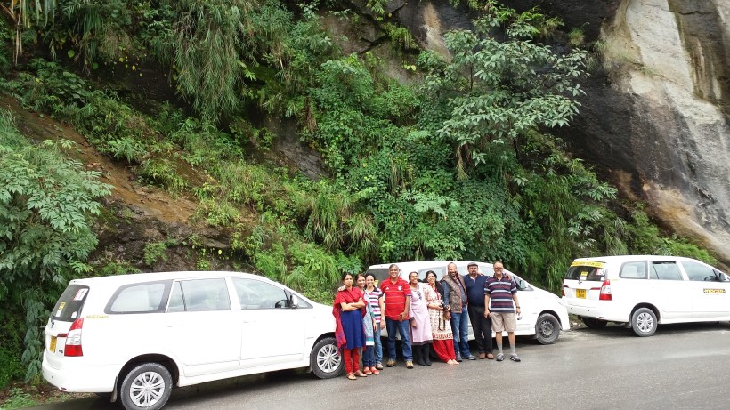 As before, my role was charting out a feasible tour plan; the route, the accommodations, the time schedule. Long nights, searching the internet followed and a 9 day plan was drawn up with our eyes set on the snowcapped mountains and wildflowers of Sikkim. There were 13 members in our group, which included five couples. We planned to drive ourselves and to save time; we decided to avail the Self Drive Cars from `ORIX – My Choice’, Kolkatta. We booked 3 Toyota Innova Cars, considering comfort and reliability. A techie-turned Tour Organizer from North – East, Mr. Pranay Gautham, who was a colleague of my cousin earlier, helped us out by arranging Hotel Bookings and giving suggestions based on our drive plan. He also arranged the initial Entry Permits, which saved our time at the Sikkim Entry Check Post. But to enter restricted areas in North and East Sikkim, Inner Line Permits were required and our team member Suresh, working with DRDO, managed to get it through his defense contacts.