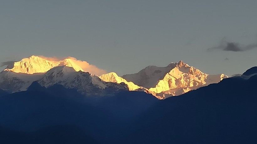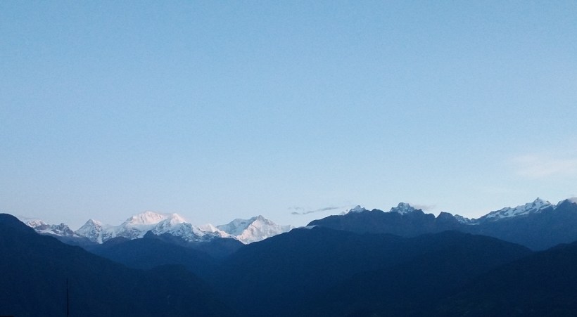 When the alarm beeped at 4 AM and I came back to my senses, I immediately rushed to the window. I was overjoyed – over the distance, there stood Mount Kanchenjunga in all its magnificence. Luckily, there were no clouds; the snow covered peak was clearly visible.
