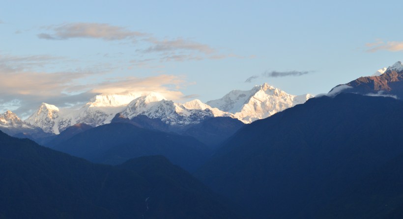 We enjoyed a late lunch at the famous Kabur Restaurant in Pelling, which was perfectly located with awesome views of the valley. They served great food – Thenduk and Thupka, accompanied by local garlic bread. Thenduk, the hand pulled noodle soup, was perfectly apt for the cold weather. We came back to the hotel and had an evening stroll in the beautiful town once again since we would be leaving Pelling the next day. The hotel manager advised us to get up at 4 am in the morning so as to enjoy the real beauty of the snowcapped mountains. So I set the alarm at 4 am and slipped under the thick blankets, not sure about what will happen the next day.
