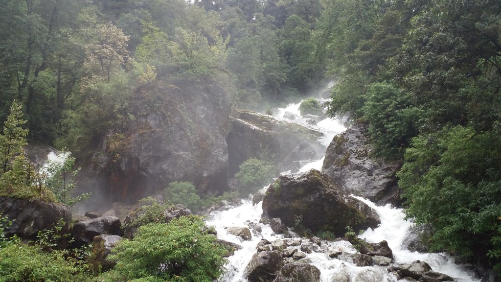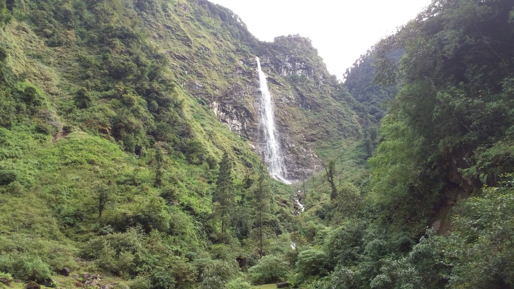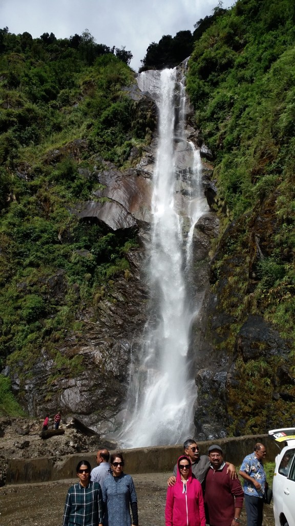 We got the punctured tyre repaired at Chungthang town and continued our journey to Lachung. We found many waterfalls on the way, some near the road and some far away.