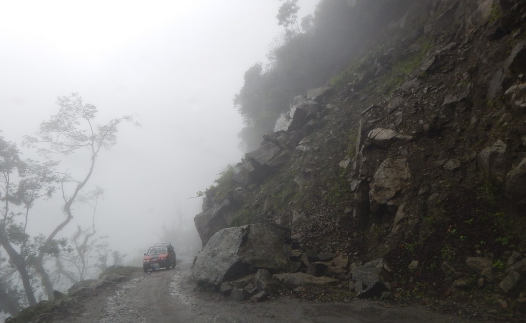 Our driver told us that there was a devastating landslide two years back when a significant part of the mountain collapsed, covering the road with huge rocks and soil. B.R.O. (Border Roads Organization) had to work continuously for a few weeks to remove the debris and clear the road for traffic.