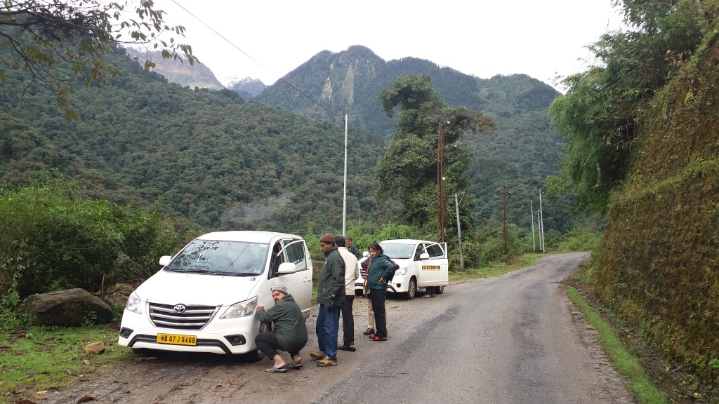 After a while, we had to stop to attend to the second tyre puncture for the same car that had the same issue at Pelling. Since we had enough time, it was not a concern and we resumed our journey after replacing the tyre.