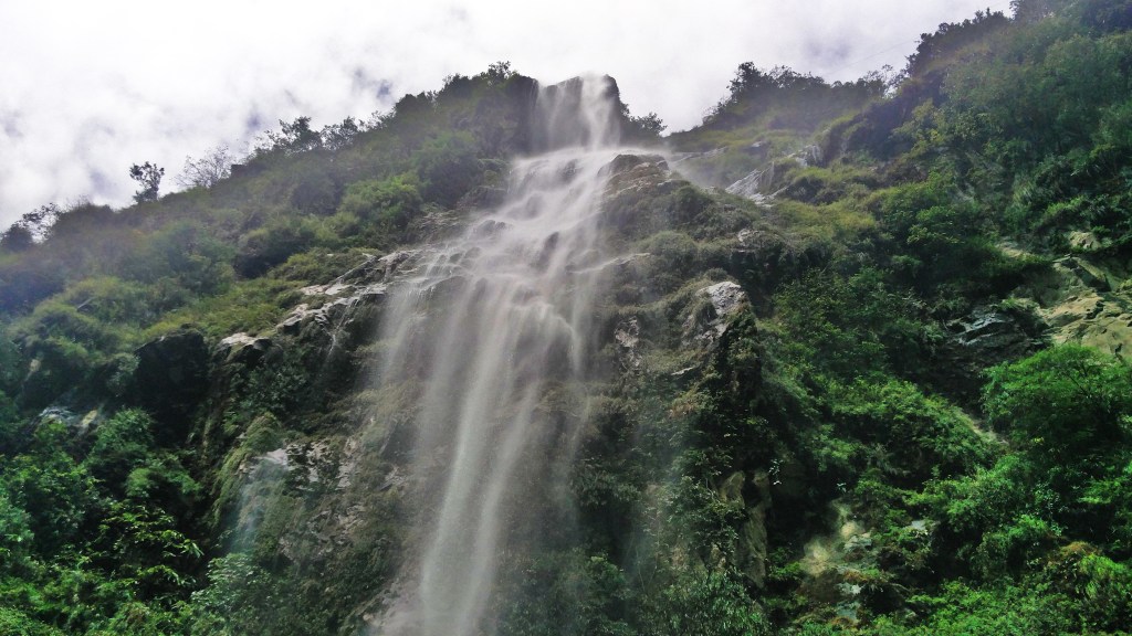 As we gained altitude, it became more and more foggy and our progress became very slow. The mist and moisture from the small waterfalls made the nearby road slushy, causing traffic jams at a few places.