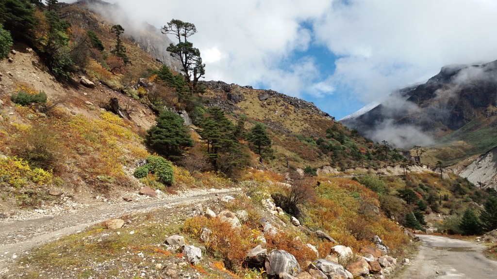 The approach to Yumesamdong village in Yumthang valley can definitely be rated as one of the most picturesque locations in our trip.