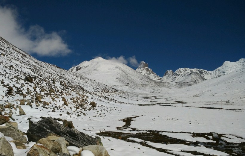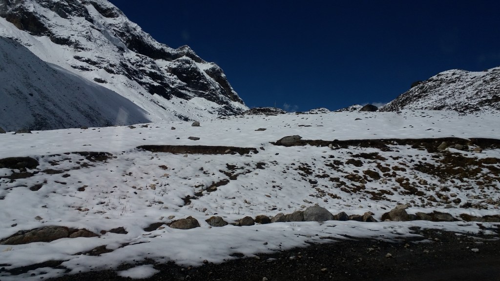 We spotted snowcapped mountains at a distance and as we moved on, the presence of snow increased.