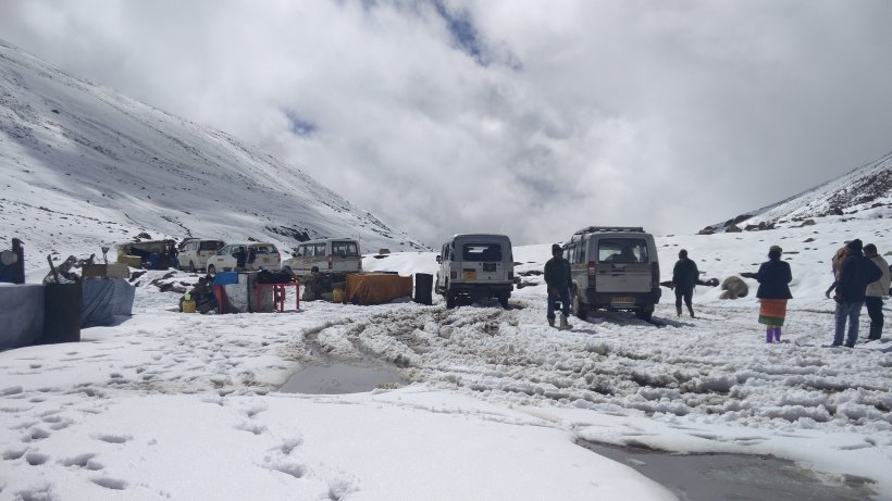 The visibility was poor because of heavy fog and we reached the water crossing when it was just getting dark. We stopped and observed some bigger vehicles crossing the roaring stream and identified a relatively safe path. A few of our team members got out, walked through the ice cold water and guided the vehicles. All three cars crossed the rushing water with only some minor underbody scratches and we were happy. Our happiness didn’t last long as we were stopped by Army a few hundred meters before our destination – there was a landslide and the traffic was closed. Our hotel manager had tried to contact us earlier to update the situation, but there was no network coverage for any of us. Finally we got a call from him when we were frantically trying to locate a place of stay for the night. To our relief, he arranged 4 rooms for us at the only available place we could reach, Hotel NOR-LHA and managed to get us some food too. Since the road ahead was closed by the Army, we had to cancel our drive to the beautiful Gurudongmar Lake, which was our plan for the next day.