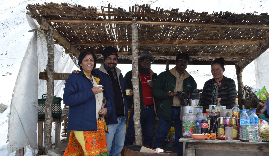 The altitude of over 15,500 feet and the temperature of about 1 to 2 degree C caused headache and discomfort to some of our members and we decided to leave Zero point after about an hour.