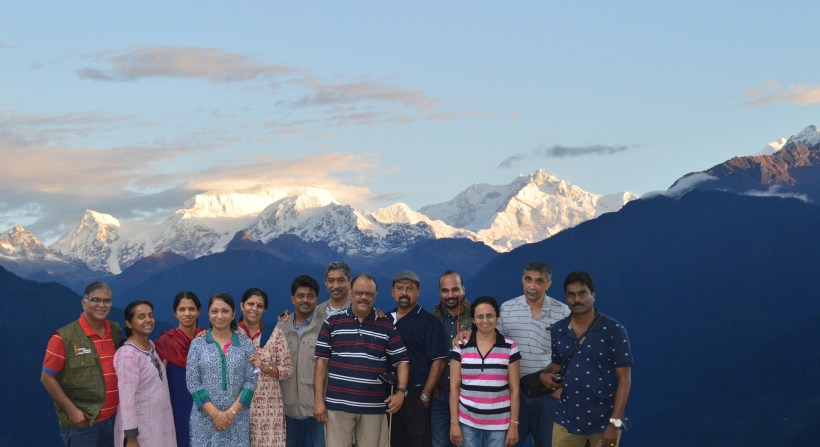 We checked out of Hotel Golden Fish, Lachung after breakfast and took a group photo with our host.