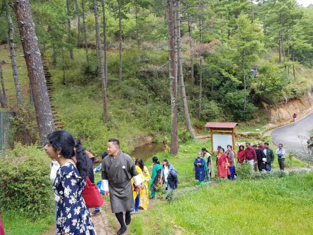 The trail from the Gate to the Park has huge Pine trees on the sides and takes you all up to the preserve. This was our first trek in Bhutan. We reached the top without much difficulty. It took us approximately 20 minutes and the climb was steep.