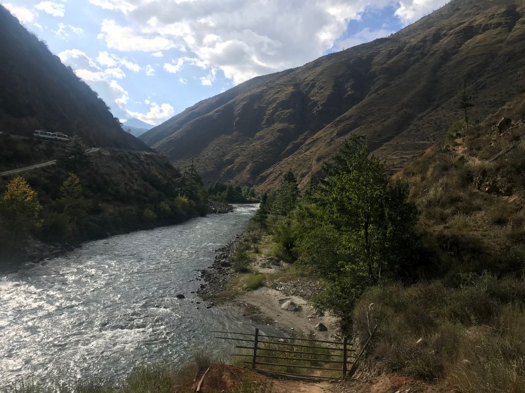 Khuruthang is a small town about 5km before Punaka .Lingher hotel was situated along the banks of River Puna Tsang Chu which flows through this town .We had our first experience of a typical Bhutanese menu here. Rice with Chilies and Cheese curry, spicy chicken stew, momos and many other dishes served with the local butter tea Suja. The food was less spicy than the traditional spicy food for which Bhutan is famous for.