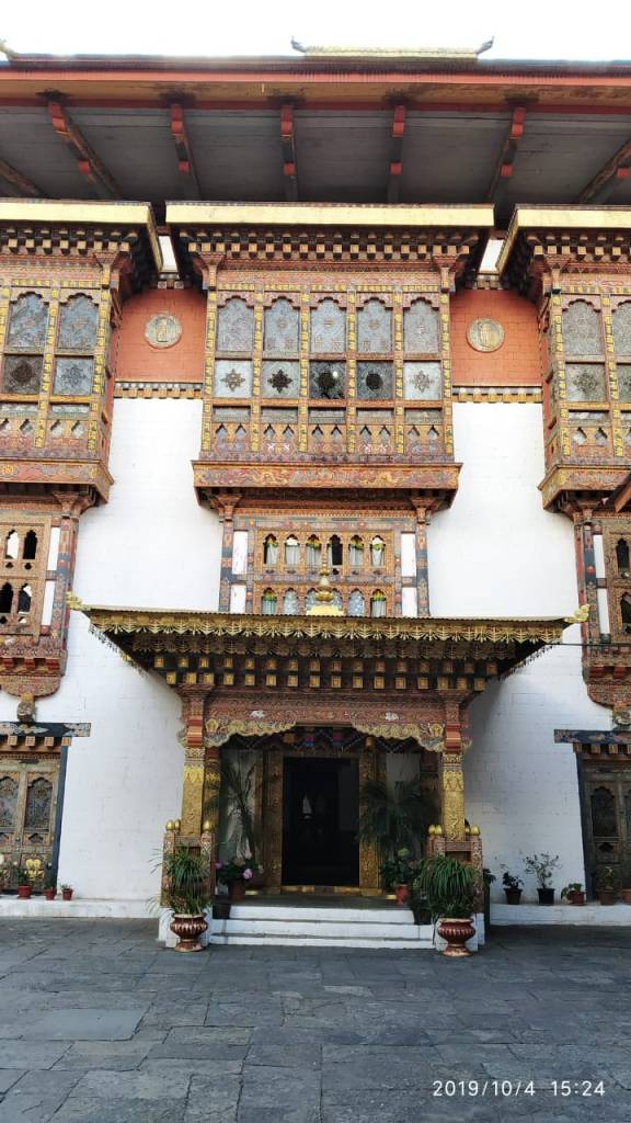 Our first visit was to the National Memorial Chorten constructed in the memory of the 3rd king of Bhutan. Chorten means Stupa. This beautiful white structure has a golden spire at the top with similar but smaller spires at its entrance. We walked in through a decorated front gate and reached the porch via a beautiful garden. The interiors are decorated with statues and had a shrine dedicated to Druk Gyalpo who was the 3rd king.Traditional Budhists were seen circumambulating this monument reciting prayers. We came out of the place feeling blessed.