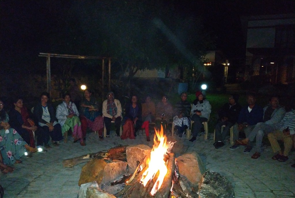 Kichu hotel at Punaka was spacious and nested in the bowl of nature. We checked in and after dinner assembled for the last event of the day-Campfire. Our Thiruvathirakali group had already begun their practice in a nearby side portico and we waited patiently for them to finish.