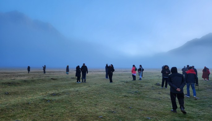 However, we were lucky we could enjoy the heavenly beauty of the Mirror Lake, situated a little ahead. An aesthetically built walkway, made of steel and wood, was provided on the lake side for tourists to enjoy the scenery and take pictures.