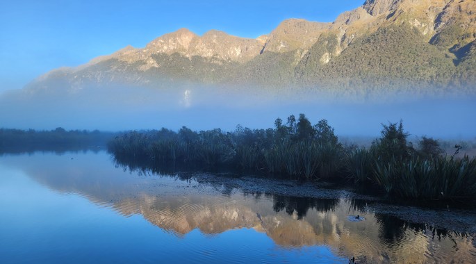 The drive from Te Anau to Milford Sound, through the Fjordland National Park, is indeed scenic. We stopped at a location where the Hollywood movie, “The Lord of the Rings” was shot, but the morning mist played spoil sport.