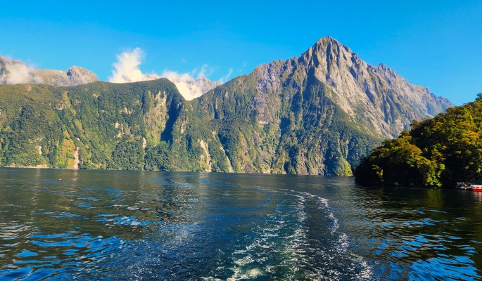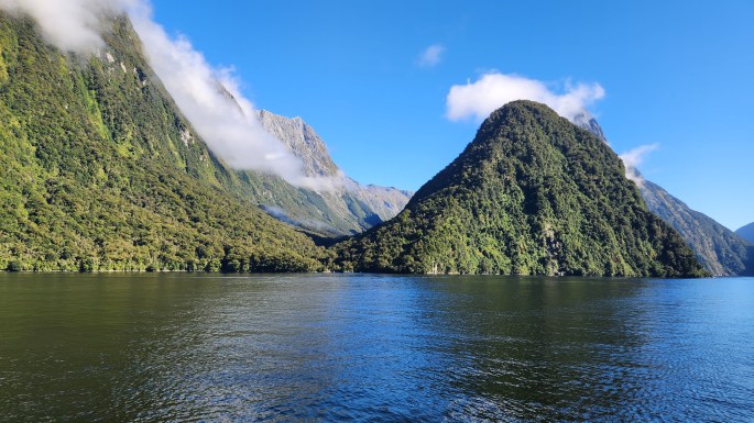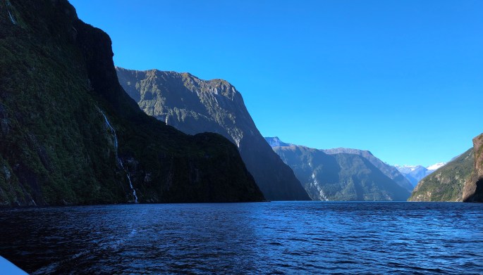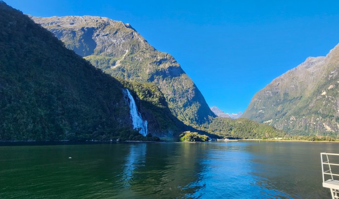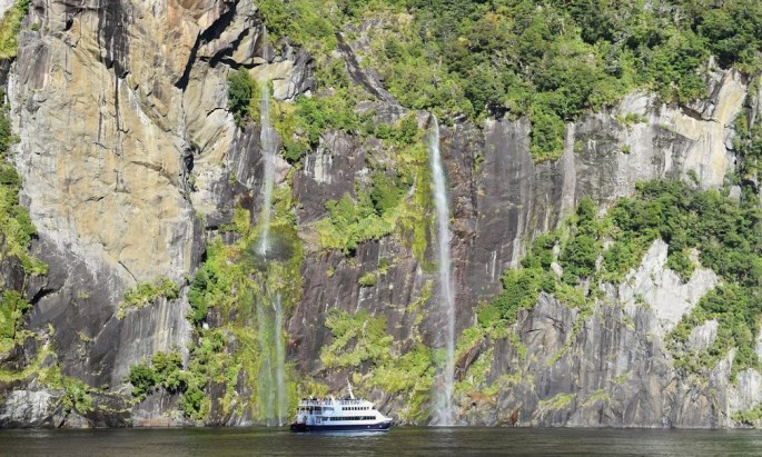 The boat cruise on Milford Sound was a mesmerizing experience, with the boat navigating among the steep, lofty peaks, studded with some beautiful waterfalls.