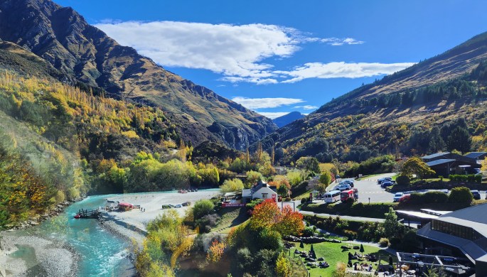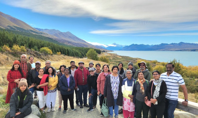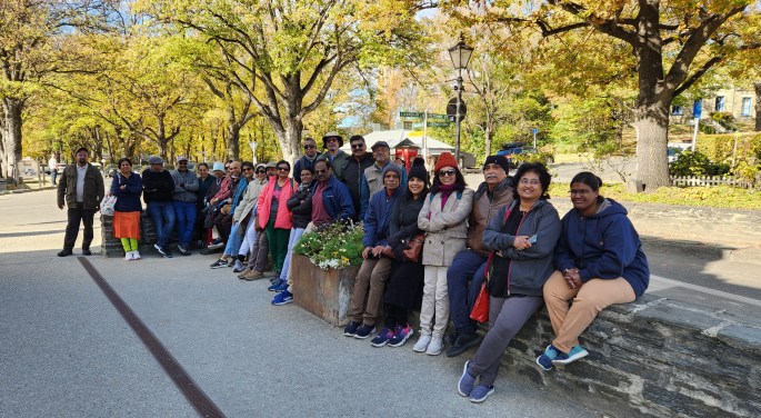 We boarded our flight from Auckland to Queenstown on 21st April, 2024, before noon. As the flight descended to Queenstown, the mountain ranges and lakes came into view. Immediately after touch down, the aircraft took off again causing great concern among passengers. The Captain announced that there is no need to panic and to stay calm, as this kind of situation is not unusual in Queenstown. The airstrip is between tall mountains and because of adverse wind conditions, sometimes the pilots will have to abort landing in the last minute. However, after about 10 minutes of flying around, the aircraft successfully landed in Queenstown, and there was a collective sigh of relief. As we came out of the airport to board our tourist coach, the enchanting sights of mountains and beech trees welcomed us.