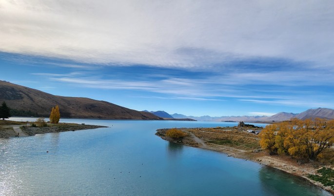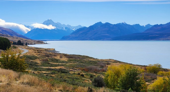 During our journey from Twizel to Christchurch, we took a de-tour and stopped at Peters’ Lookout on the shore of the lake Pukaki to enjoy the views of New Zealand’s highest peak, Mount Cook.