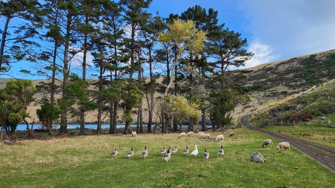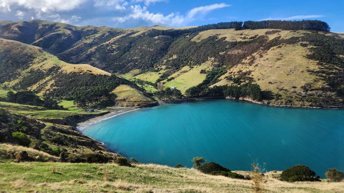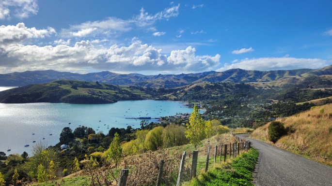 The entire route is quite scenic and there are viewpoints to enjoy stunning views of Akaroa Harbour, farmlands and forested hillsides.
